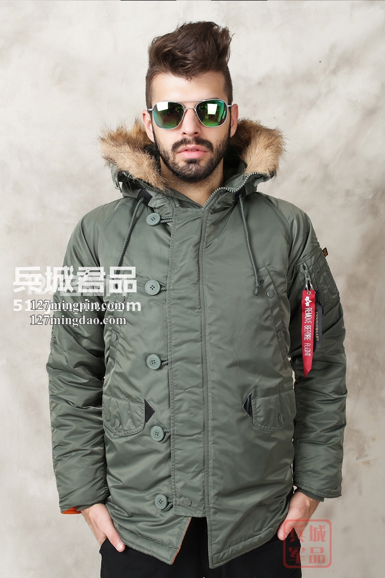 . 美国正品Alpha阿尔法 N3B 假毛瘦身版 缎面 男式棉服防寒风衣_美国阿尔法_127名刀|名刀网