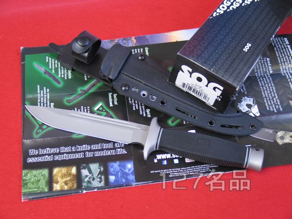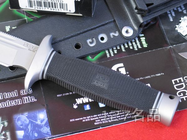 重量:278克 型号: S21B 柄材: Karton 表面: 钛炭涂层处理 原产地: 美国 台湾分厂 几乎所有制刀厂商,生产格斗刀的技术,早已发展到成熟阶段。但是SOG公司仍然自我挑战,他们要证明这把"Gov-Tac"格斗刀,拥有以下突破他人所没有的优点: 流线而符合人体工学的握炳,加上压有细密菱纹的Kraton橡皮表面,抓握性更好; 完美而厚实、合乎实用的刃型,加上双侧各两条血槽,更能因应现代军事活动; 坚硬的柄尾,可当做铁锤应用。 |