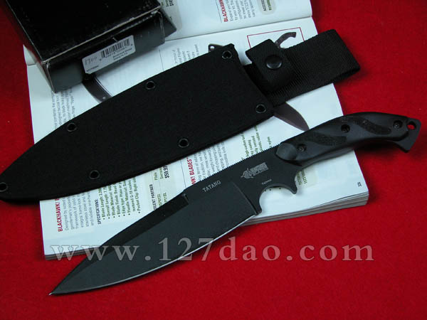| 15TT00BK 重量: 440g 柄材:热塑性橡胶防滑手柄. 表面:黑色环氧树脂. BlackHawk 15TT00BK Tatang 荣誉武士,Tatang是塔加拉语中一个精通武术拥有无限荣誉和骄傲的武士,由武器专家Michael Janich设计出的这一款拥有野蛮刀锋的直刀。双刀锋的设计更适合刺、砍、削等。整刀重量中心点偏向前部,刀柄前部手枪板机式设计使得穿刺及砍削更得心应手,刀柄采用热塑性橡胶处理。 刀身采用黑色环氧涂层及1085C高碳工具钢赋予它巨大的完成霹砍工作的能力。这个令人难以置信的全能砍刀配有一个加强尼龙护套。 美国黑鹰公司自成立以来,其产品受到美国军警及保安公司的青睐,黑鹰公司旗下MOD防御大师的刀具更是大家耳熟能详的,黑鹰CQC枪套,手套及刀具等被美 军,警察,SWAT及黑水等保安公司大量采购其产品畅销往世界各地,以其出色的设计稳固的质量受到了广泛好评。 |