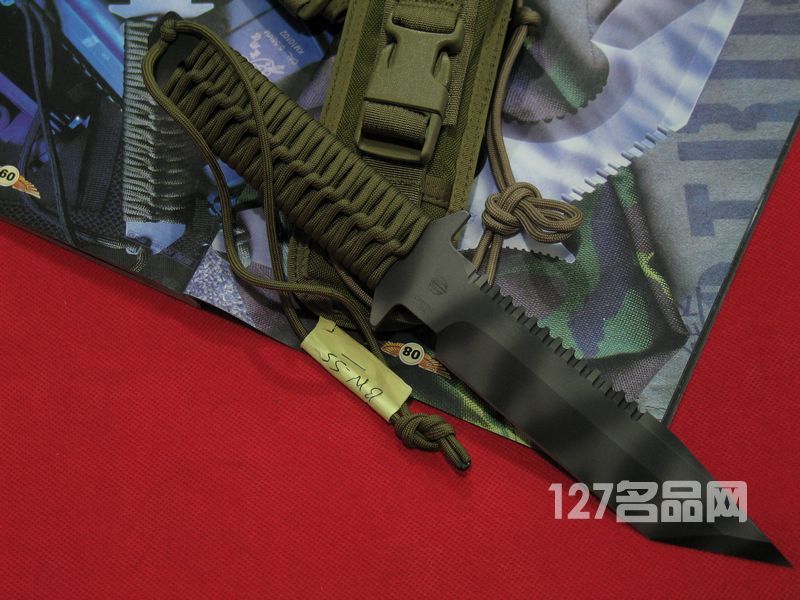 这把BN-SS采用经典的军规伞绳缠绕,伞绳柄不但舒适且提供绝佳的摩擦力。不论是在水底或是陆地上,都不会有滑手的危险。柄末端还留有一节绳套,让使用者可以将腕部套入其内,防止在格斗或是执行重型劈砍式出现刀具脱手情况。