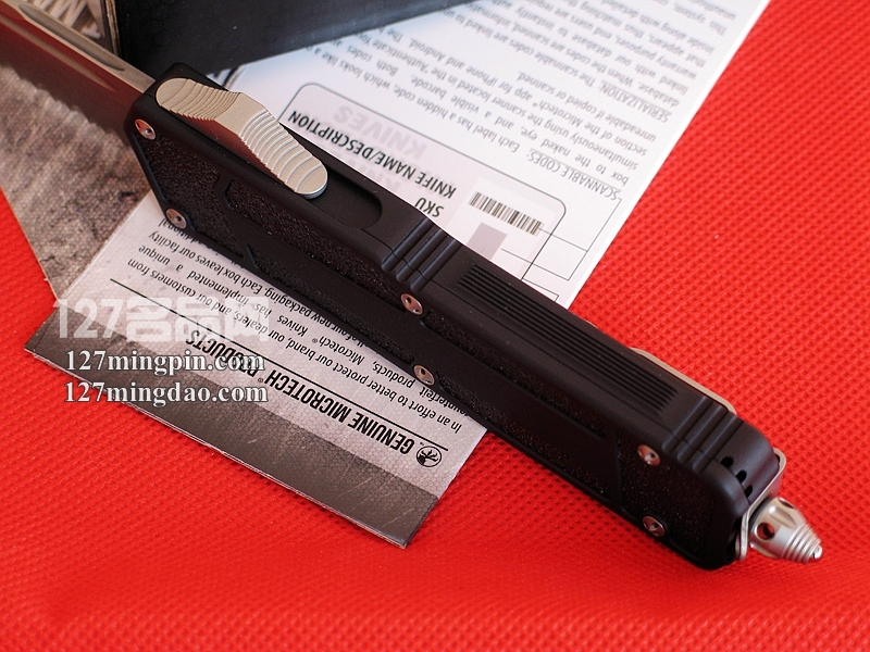 MT公司的全自动刀具问世后,市场和评价都非常好,公司推出了全新的自动刀具,“圣甲虫” (QD Scarab) 系列产品,它的名字是以古老的埃及故事中,一种带有吉祥意义的昆虫命名的。外形厚重而粗狂,战术味道十足。自动机械装置设计独特、安全、可靠.手柄带有防滑贴片,尾端带有破窗锥。是特战,执法,情报人员不可或缺装备,是战术格斗及近身防卫最佳选择。