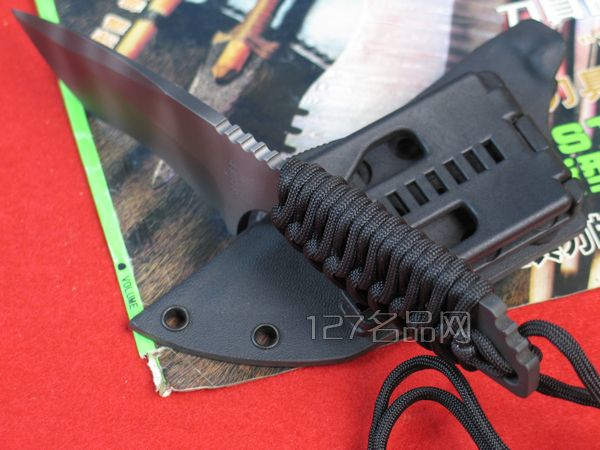 全长:21 刃长:10.4 刃厚:0.45 刃宽:3.9 硬度:60HRC 产地:美国 材质:s30v 约重:170克 Strider美国挺进者 EB-DB Black Tactical Fixed Blade 柄材: 军规伞绳 刀鞘: K刀鞘 表面: 虎纹氧化涂层