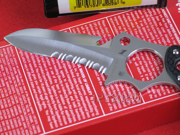 為了讓刀子可以在水中發揮最強的功效,鋼材本身首要便是抗水、抗鏽蝕性,因此Spyderco選用特殊H-1不鏽鋼來製作刀刃與刀身。H-1不鏽鋼用氮元素(nitrogen)取代鋼材中的碳(carbon)元素,由於氮元素不會與氧氣產生作用,故不容易生鏽。