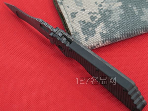 全长:23 刃长:10 刃厚:0.46 刃宽:3.3 硬度:60HRC 产地:美国 材质:s30v 约重:166克 美国挺进者Strider SMF 网纹BOS 手工版 刃材:S30V 表面:BOS热处理: 柄材:G10,燃烧纹钛合金 刀刃: 五个切割面,凹式立体研磨 锁定: 钛一体锁定