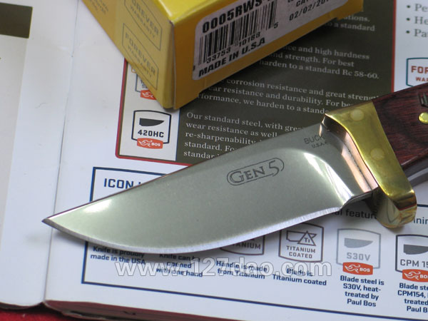 BUCK005RWS-B 是[Josh.Buck]的作品,他在设计时参考了祖父辈们的作品原理与思路同时加入自己的新元素,从而设计出这款简单而实用的小猎刀,刀柄的设计回归了近代猎刀风格,刀尖采用常见的大水滴型,但经过了优化设计,这些都是简单的思路,但结合在一起却非常完美,这款刀在北美和世界各地得到一致好评。刀为一体钢刀体,强硬非常好,可以满足粗暴的使用,刀柄体按照人体工程学设计,握感非常好,在长时间使用后不会感觉手有任何不适,刀柄贴片为天然胡桃木,衬托着这把钢铁战士而体现出美国风格的粗犷和坚实