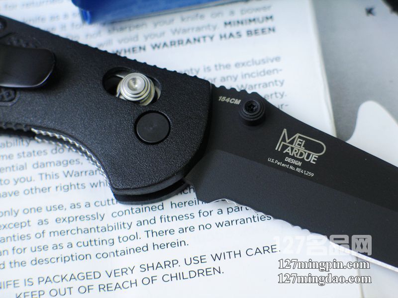 154CM不锈钢制成的刀身表面施以黑色涂层处理,拥有卓越的刃部保持性和抗锈蚀性能。以平磨开刃方式细致打磨,低阻力的刀面在切割时更加顺手流畅,出色的锋利度足以胜任各种严格的切割需求。稳健强硬的几何Tanto刀头具备惊人的穿透力。刀刃上的锯齿刃可以在户外露营时快速切割坚韧的尼龙面料,灵巧的双头拇指柱方便刀身的开合操作。