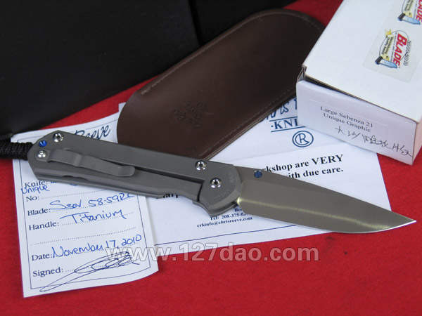 表 面: 石洗 Chris Reeve(克里斯里夫) 沙本沙大号雕花版 柄 材: 钛金属6A14V 锁 型: 框架一体锁 包 装: 原厂包装 产 地: 美国