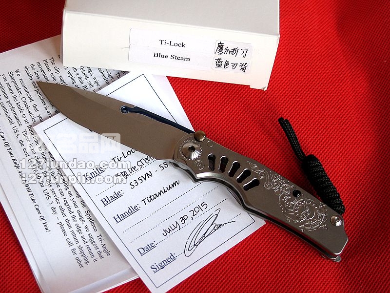 钛合金手柄,手柄上手工雕刻螺旋纹,刀刃采用材质 倒是与手柄的螺旋纹交相呼应,非常好看。对沙本沙喜欢的你,绝对不能错过。