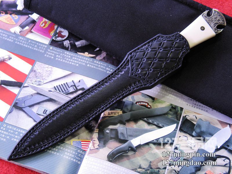 . 美国手工刀匠“威尔克森”勇者象牙镜面双刃匕首_高端名刀_127名刀|名刀网