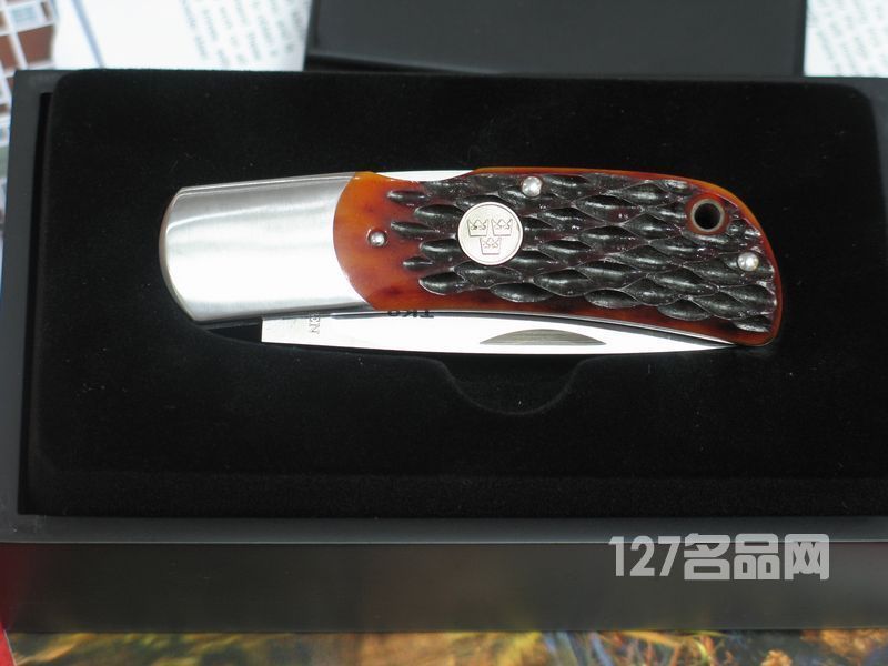 这个系列采用瑞典专利生产的超级粉末钢材,以三枚式加钢制造。硬度可达62HRC,这在当前的同规格的折刀中是很少见的。手柄上带有3个皇冠,这是瑞典皇家的标志,足以证明它的品质。这个系列的产品都是非常好的手工绅士折刀。