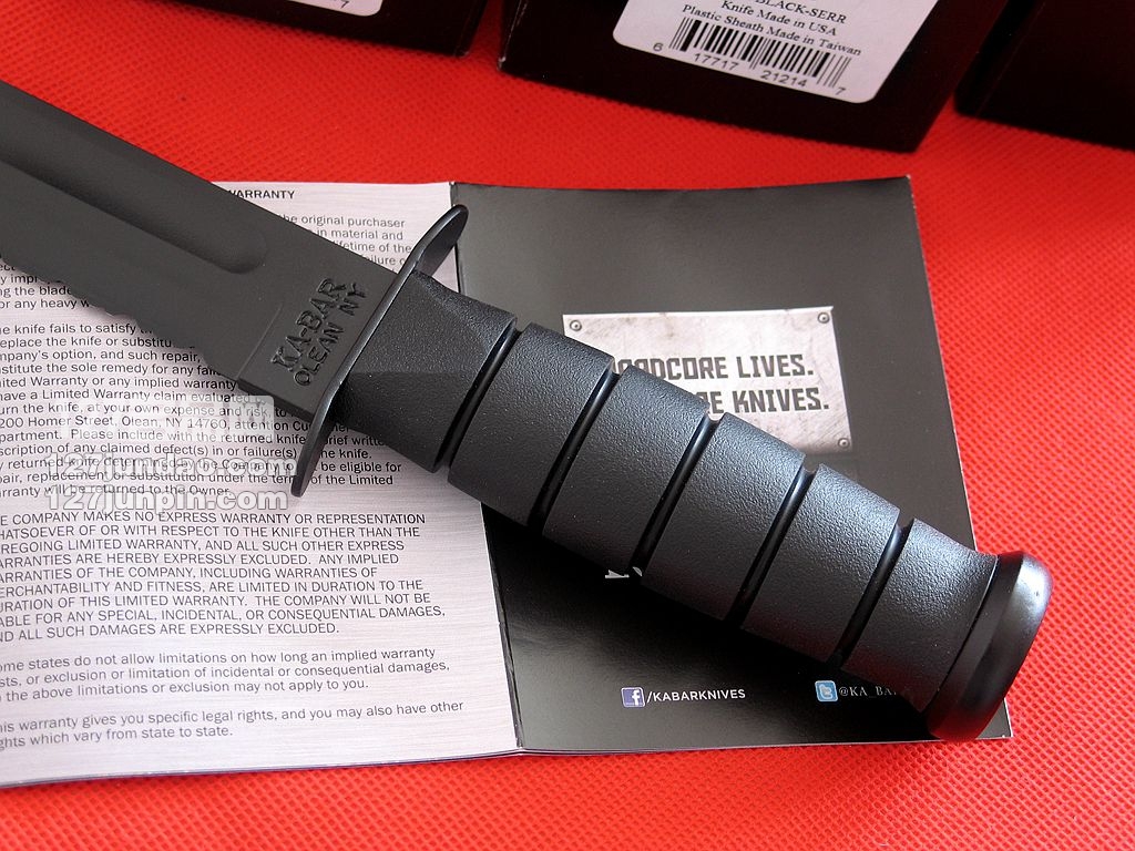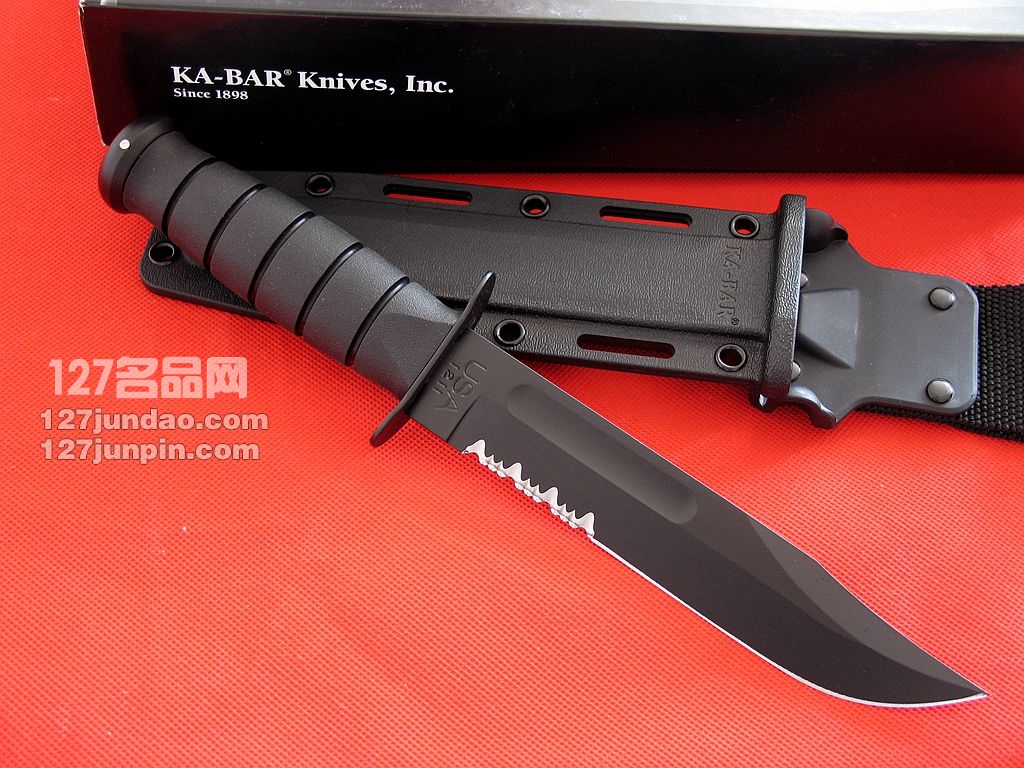 类型 直刀.. KA-BAR Knives,Inc总公司Alcas Corporation是国际知名刀具工厂,出品有U.S.M.C.特战刀、打猎刀、鱼刀、收藏刀等。KA-BAR刀厂总部成立于美国纽约,曾于1998年庆祝其公司成立100周年。自西元1942年二次大战爆发后不久,KA-BAR刀厂提交首批军刀给U.S.M.C.(美国海军陆战队)队员使用。军方于3年后,西元1945年确认其军刀之可靠性能,而把该刀命名为U.S.M.C. Fighting / Utility Knife“美国海军陆战格斗及多用途刀”,而其他武装部队也开始被建议采用此刀。