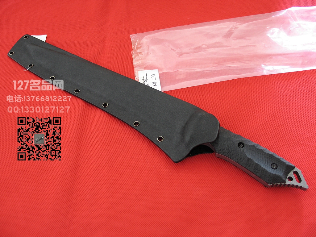 日本松田菊男KikuMatsuda KM-290掠夺者 大型战斗刀2013年亚特兰大刀展藏品 是松田菊男推出的一款大号战术直刀作品,其集合了众多菊男出色作品的优点,S形刃线和能充分发挥其劈砍力的刃型设计,但其长度要长于巨灵神.这把超大规格的刀具由OU-31钢材制作,多研磨面刀身上采用凸磨手法处理,让刀具拥有极强的抗压能力。微S形刀具轮廓让刀头部分分量十足,在挥舞式能产生意想不到的破坏力,针尖状的刀头和菊男出色的研磨让其破入力出色,可轻松破入轻型防护装置,可进行精细的切割工作.各部位不同的性能让你面对任何局面都可以游刃有余。