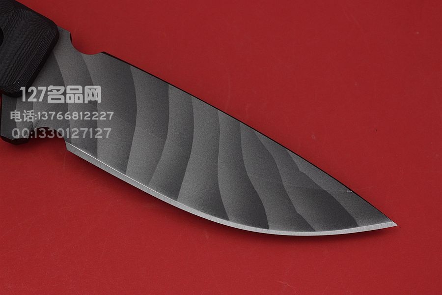 军规标准黑色G-10手柄,刀身采用三重热处理形成迷彩涂层处理,一体结构强度十足,足以对应最暴力使用环境,带有出生证书。