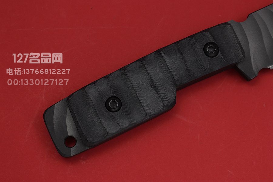 军规标准黑色G-10手柄,刀身采用三重热处理形成迷彩涂层处理,一体结构强度十足,足以对应最暴力使用环境,带有出生证书。