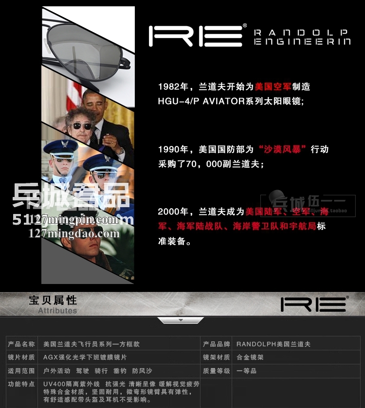 . 正 美国RANDOLPH 蓝道夫 太阳镜/军版飞行员眼镜 银色镀膜镜_美国兰道夫_127名刀|名刀网