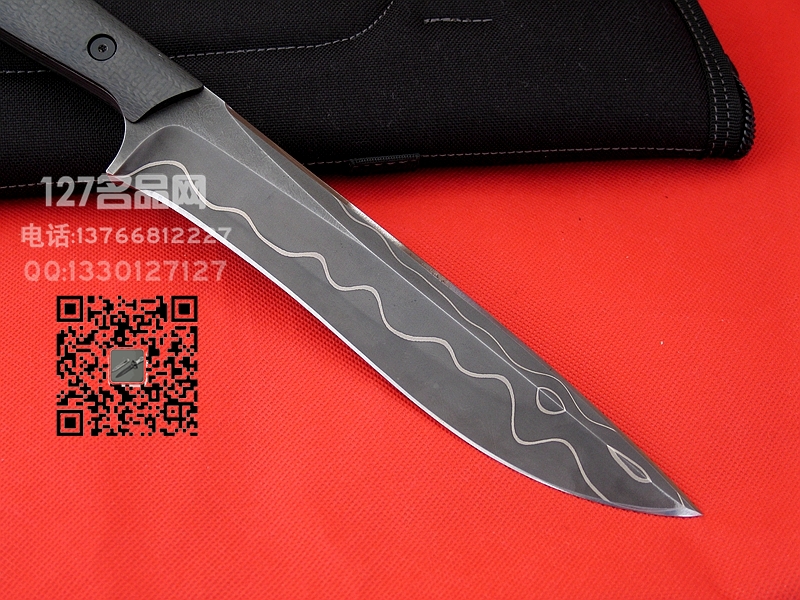 美国挺进者Strider MSC forged Damascus Fighter。MSC是指Mick Strider Custom,是著名战术刀具品牌STRIDER当家刀匠Mick的个人定制刀具品牌,设计和做工都要远高于量产。而MSC forged Damascus则是Mick个人亲手锻造的Damascus钢的总称,该种刃材仅应用于MSC中最高端的产品。这把直刀是Mick最早期开始使用MSC forged Damascus的作品,刃材层次较少以保留更多的高碳钢部分,使其除了观赏性外仍具有实用价值。独特的风格搭配碳纤维手柄和手签“M.STRIDER”,这把战斗直刀非常具有收藏价值。