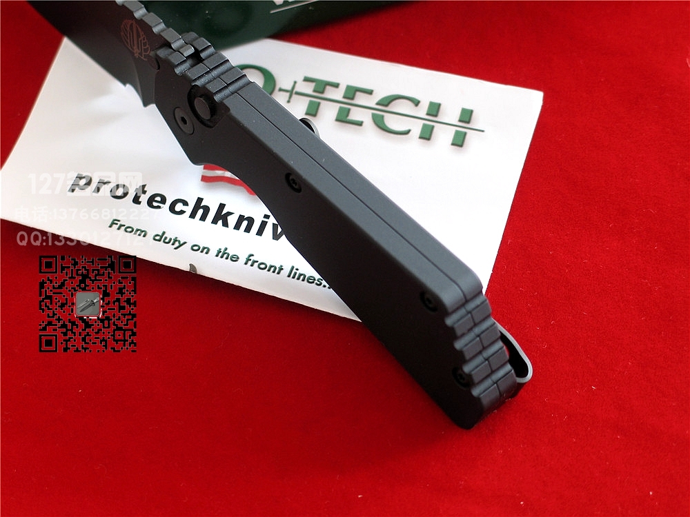 美国超技术&挺进者合作款 Protech&Strider #2303 PT AUTO 154CM不锈钢双面标铝柄黑色DLC涂层版经典战术侧跳 独立编号限量版战术侧跳刀.
