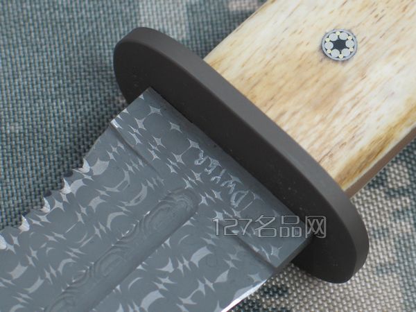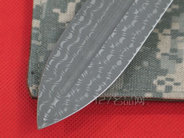 全长:33 刃长:19.9 刃厚:0.42 刃宽:4.2 硬度:63HRC 产地:美国 材质:大马士革钢