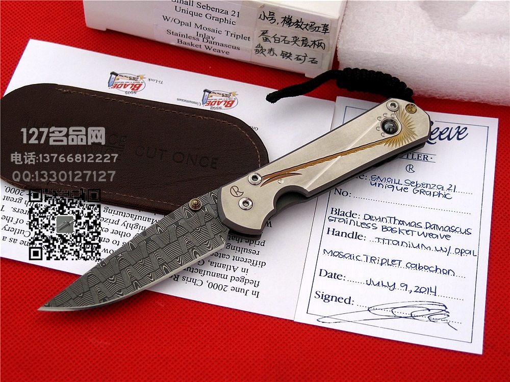 美国克里斯 里夫Chris Reeve小沙大马士革雕花嵌矿宝石 名刀 (备货中)指数:7800